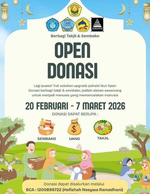 Kegiatan open donasi ini berlangsung mulai 20 Februari hingga 7 Maret 2026. Selama periode tersebut, masyarakat umum, civitas akademika, maupun donatur lainnya dapat berpartisipasi dengan memberikan kontribusi berupa sembako, uang, maupun takjil. Donasi yang terkumpul nantinya akan disalurkan kepada masyarakat yang membutuhkan, khususnya menjelang waktu berbuka puasa.