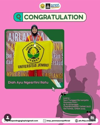 Himpunan Mahasiswa Program Studi Pendidikan Masyarakat (HMP Penmas UNEJ) turut menyampaikan ucapan selamat dan apresiasi atas pencapaian tersebut. Prestasi ini menjadi bukti nyata bahwa mahasiswa Universitas Jember, khususnya dari Program Studi Pendidikan Masyarakat, tidak hanya unggul dalam bidang akademik tetapi juga memiliki kemampuan dan potensi tinggi dalam bidang olahraga bela diri.