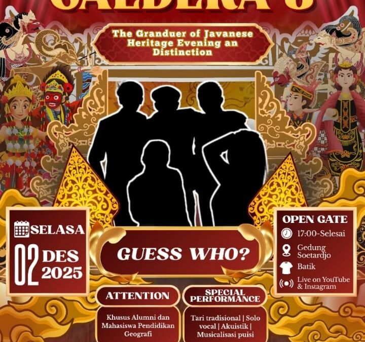 Jember- Program Studi Pendidikan Geografi FKIP Universitas Jember kembali menggelar perayaan Diesnatalis melalui acara tahunan bertajuk CALDERA 8. Mengusung tema “The Grandeur of Javanese Heritage: Evening and Distinction”, kegiatan ini menonjolkan kekayaan budaya Jawa melalui berbagai bentuk pertunjukan seni yang dikemas secara elegan dan penuh makna.