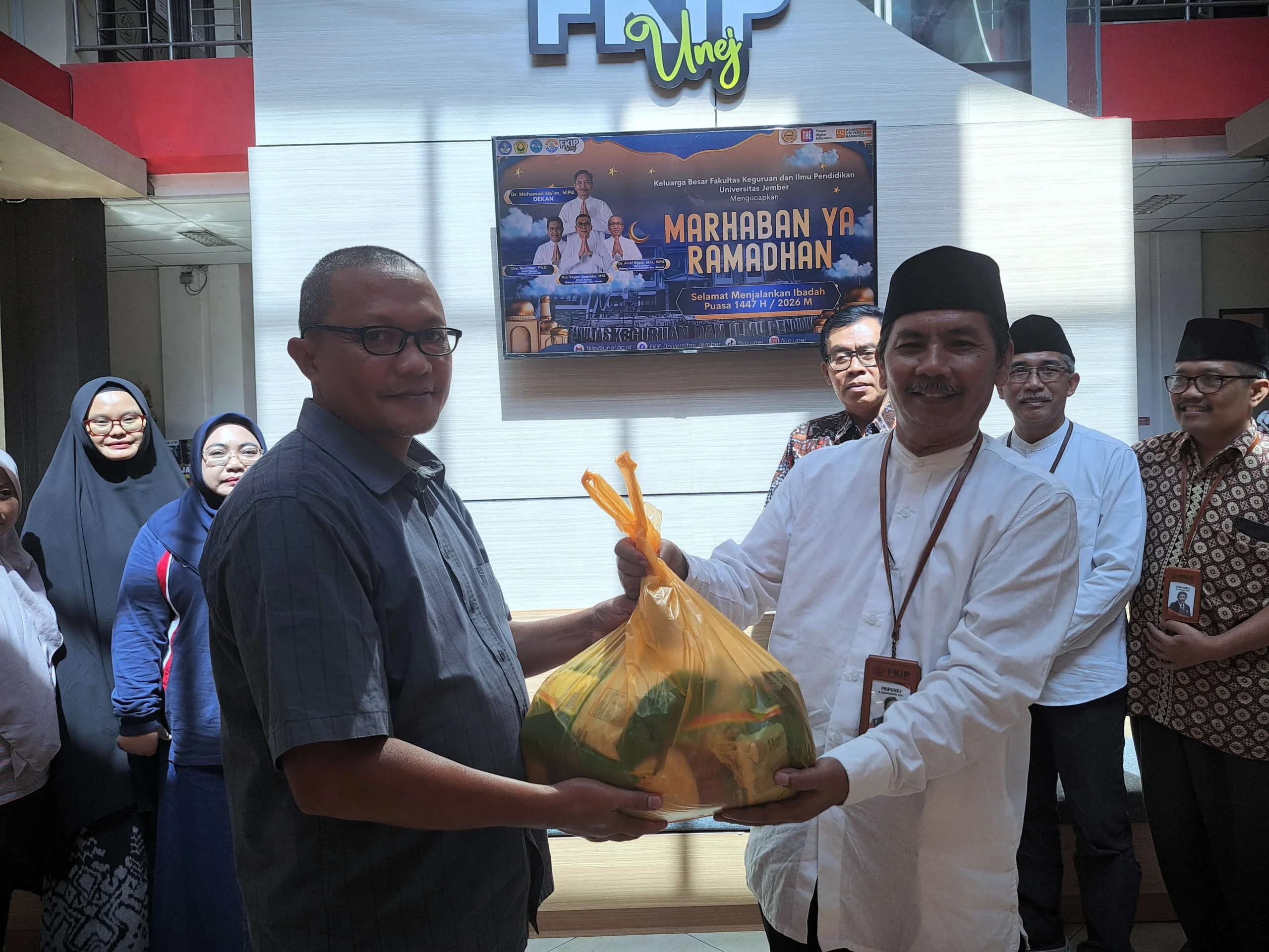 Dalam sambutannya, Dekan FKIP menyampaikan bahwa bingkisan ini bukan sekadar materi, melainkan bentuk tanda kasih dan apresiasi atas dedikasi tanpa henti yang diberikan oleh dosen maupun tendik dalam memajukan kualitas pendidikan di Universitas Jember.